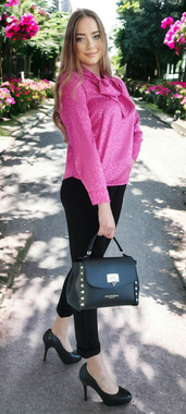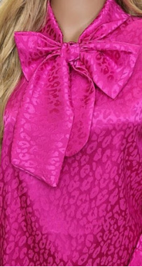 Anyagában mintás pink színű blúz nyakán masni díszítéssel One size