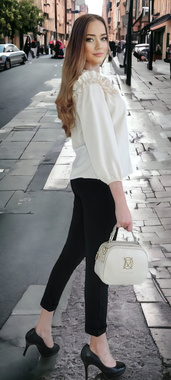 Női gyöngyökkel és flitterrel díszíttt áttetsző blúz