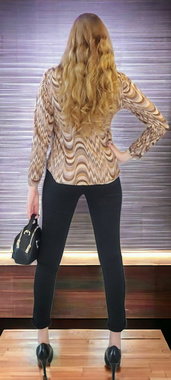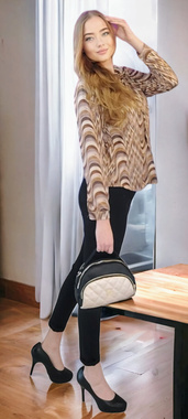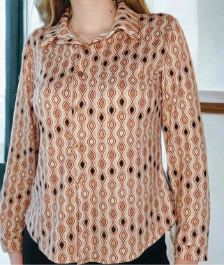 Anyagában mintás fekete színű blúz nyakán masni díszítéssel One size