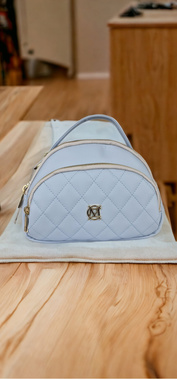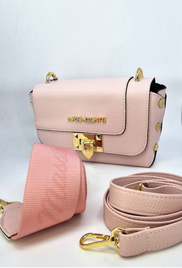 Massimo Contti női bőrhatású táska pasztell lila színben fehér kistáska díszítéssel
